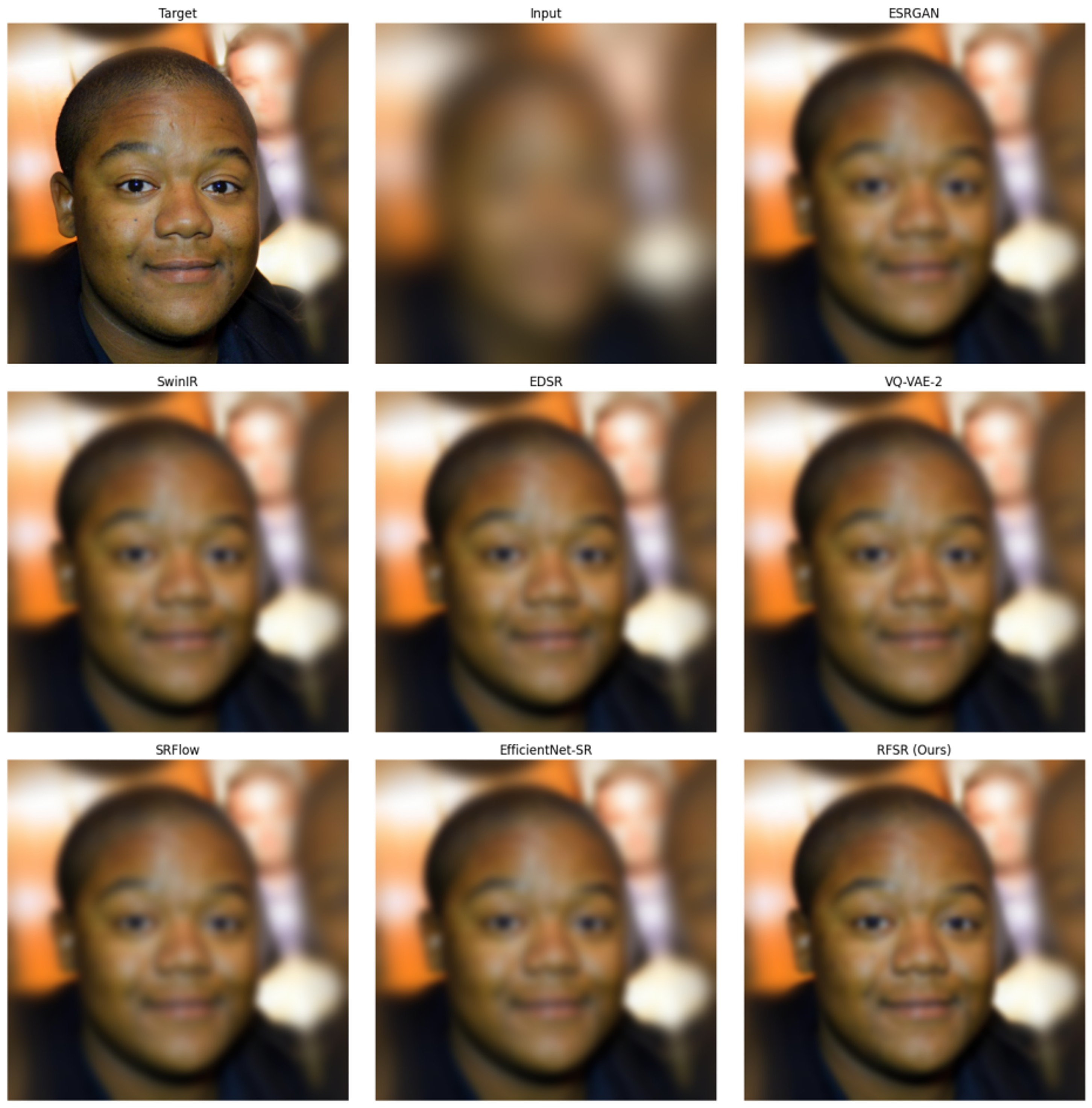 between RFSR and other methods is particularly notable. For instance, EfficientNet-SR,