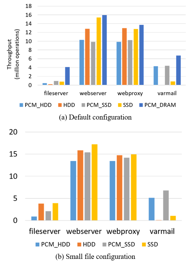 conventional devices. With the emulated PCM, workloads were evaluated with varying