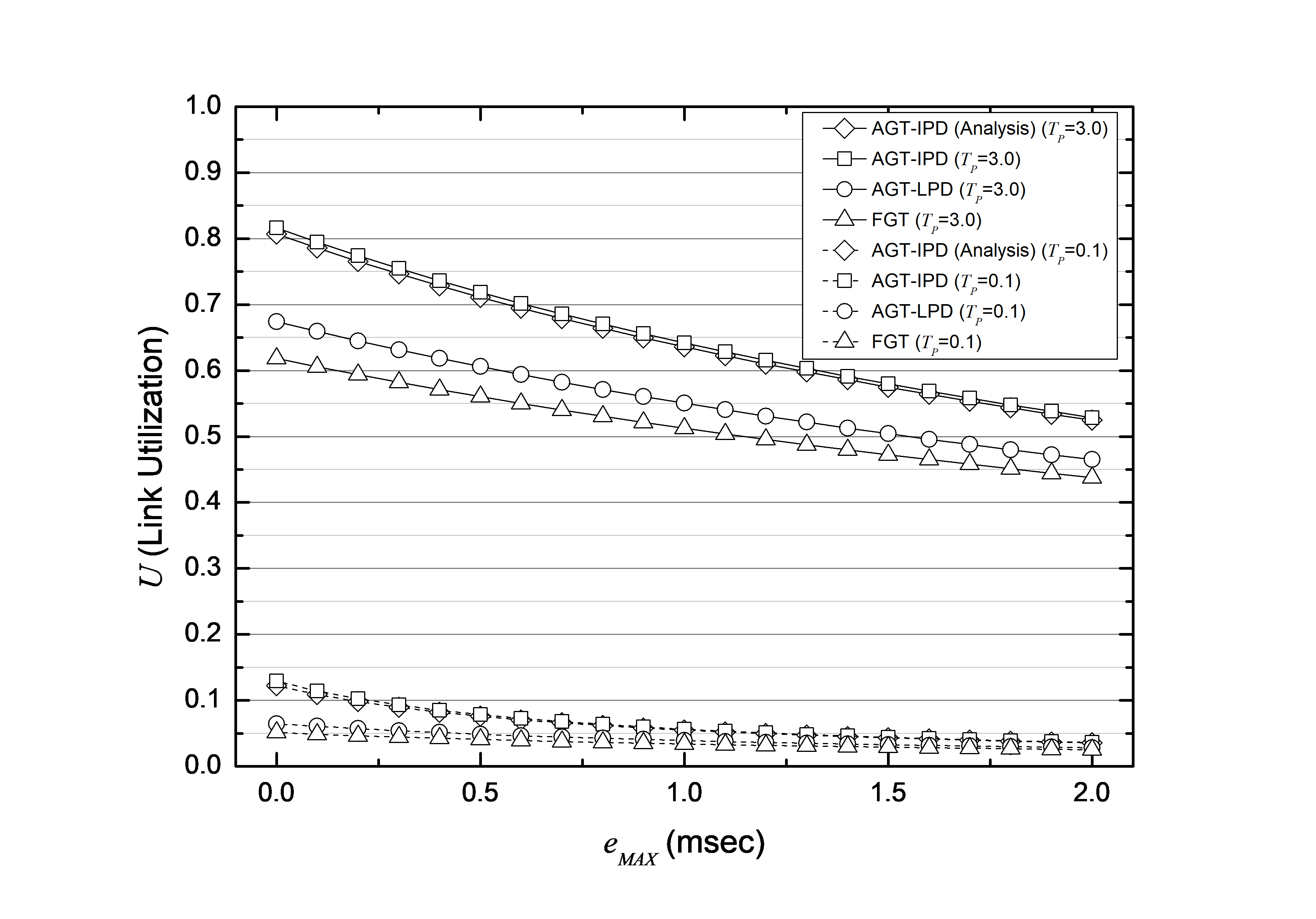 Now, we can obtain $\textit{U}$ in the analytical model. In (4), $\textit{T}$$_{G,i}$ becomes $\textit{E}$[$\textit{P}$] + $\textit{e}$$_{MAX}$ for