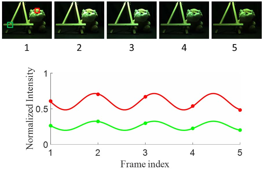 pixels that follow sinusoidal curves and exploited dichromatic plane estimation. [16] proposed a temporal gradient map generated with the intensity difference between