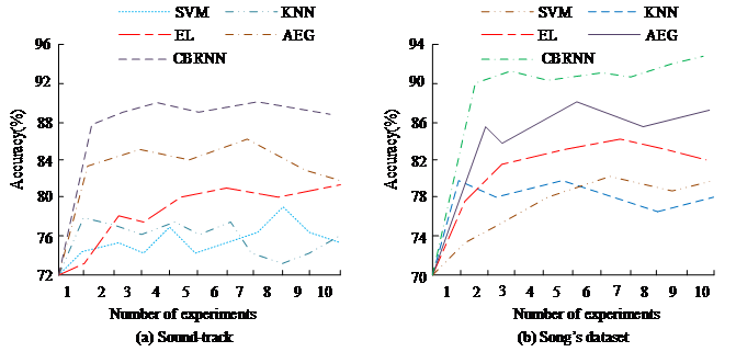 achieves an accuracy of up to 92% in 10 random recognitions in the Sound-track dataset