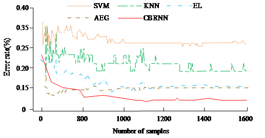 than the other four methods. In summary, the proposed CBRNN method has higher accuracy