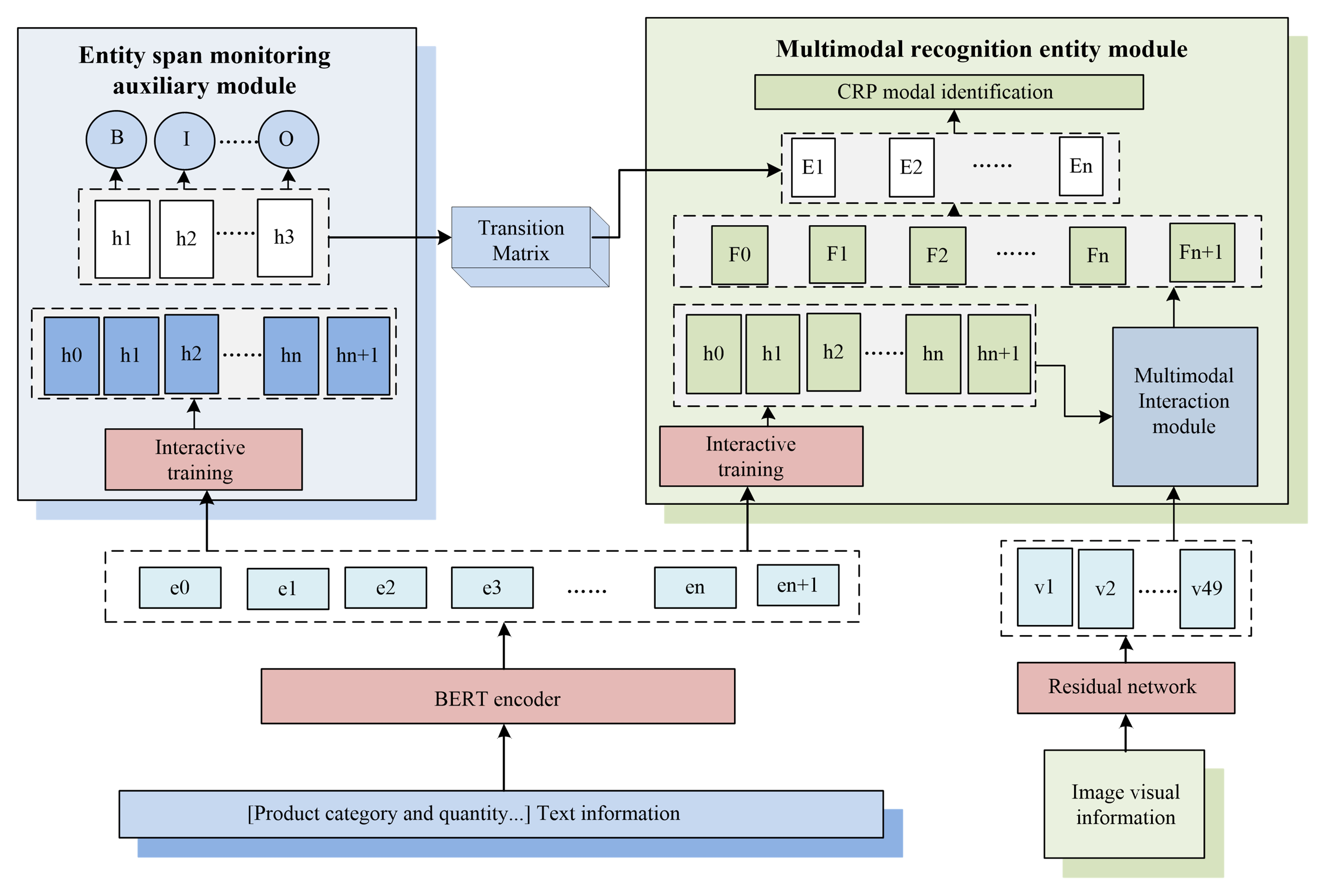 output to the training cross-layer, the text information is input from the bottom,