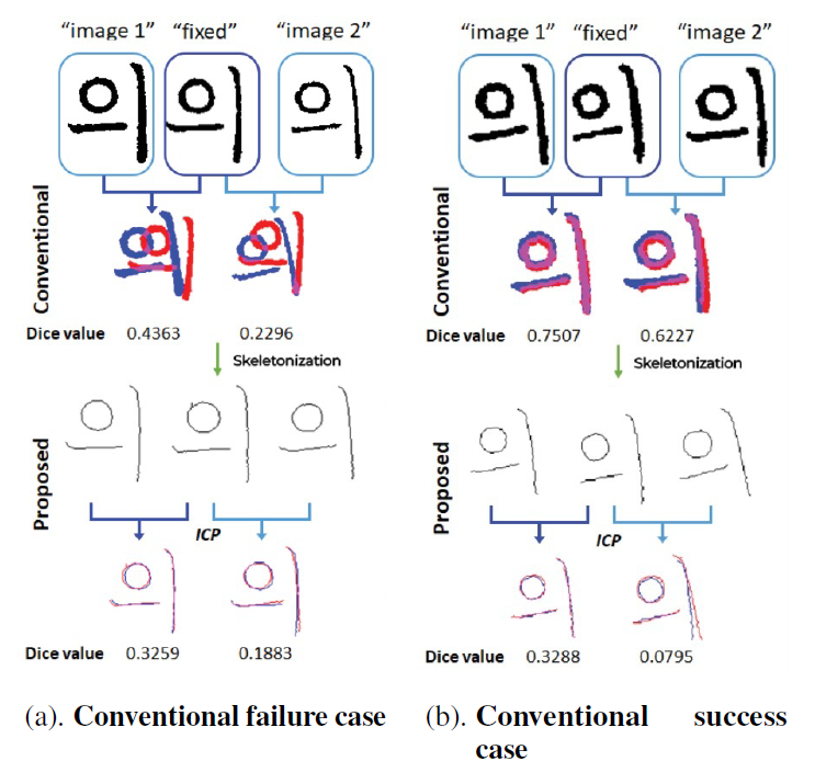 Document analysis, Skeletonization, Iterative Closest point, Dice coefficient