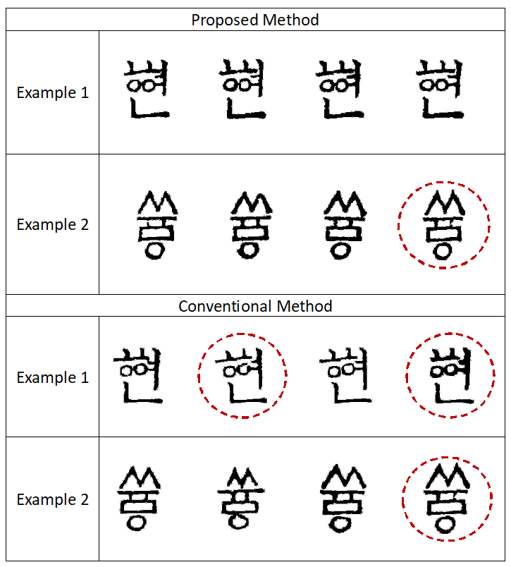 as demonstrated in Fig. 2. Although each group represents the same character, variations arise due to the limitations