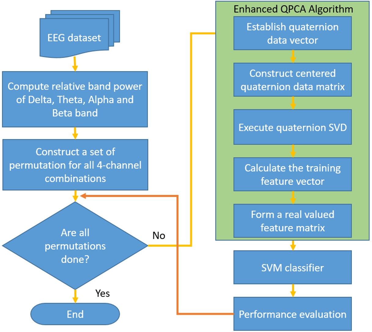 matrix. The enhanced QPCA algorithm for multichannel EEG signal processing is outlined