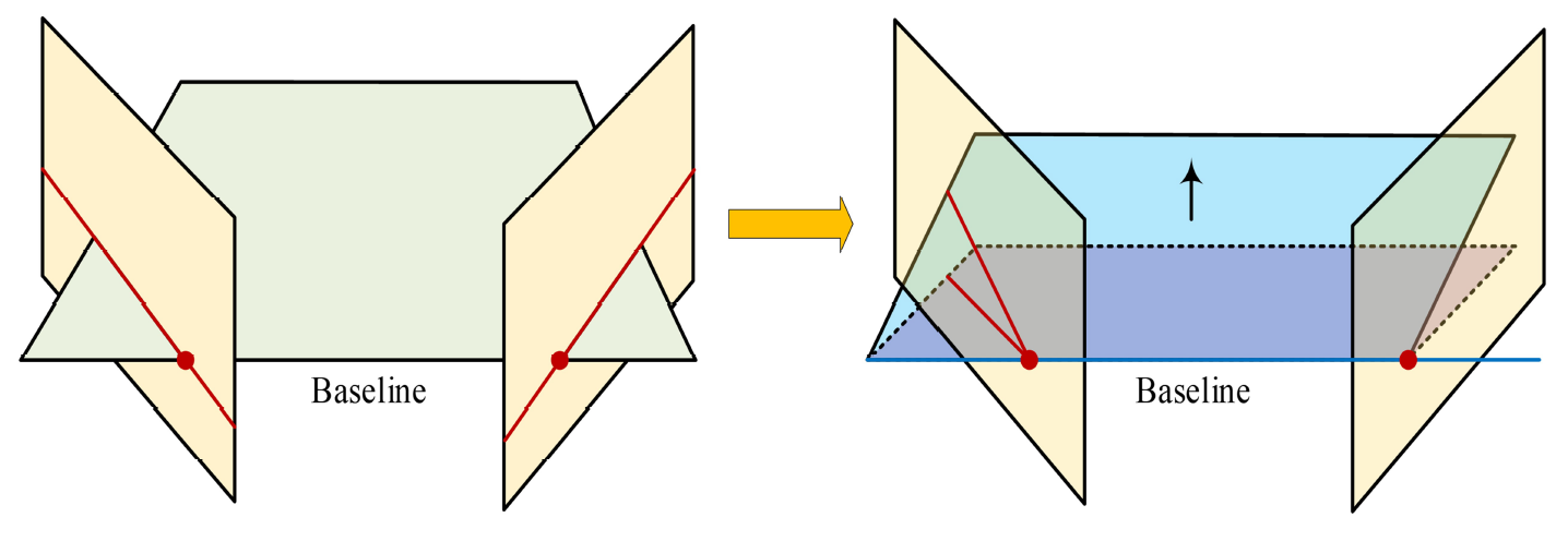 As shown in Fig. 2, the line connecting the two cameras (baseline) will intersect with the opposite