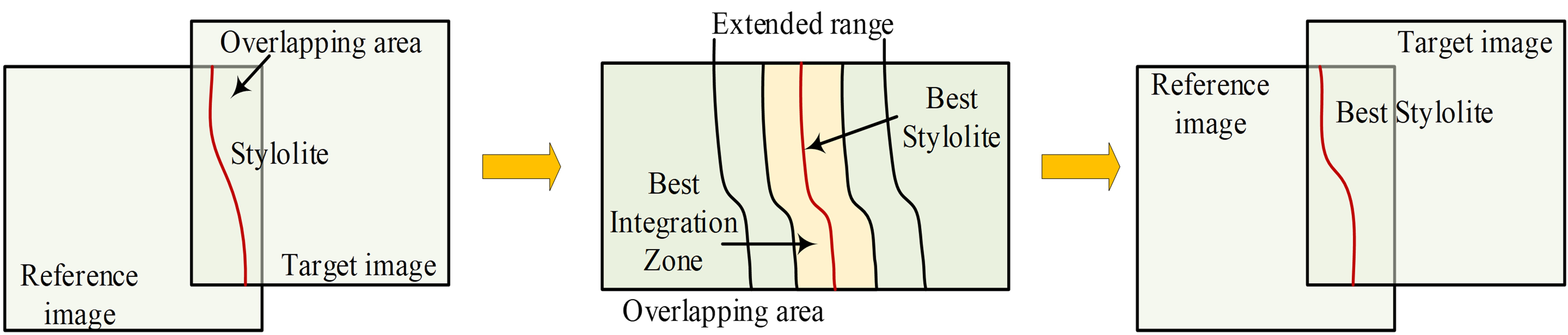 algorithm. Then it will conduct a suture line search in the overlapping area and find