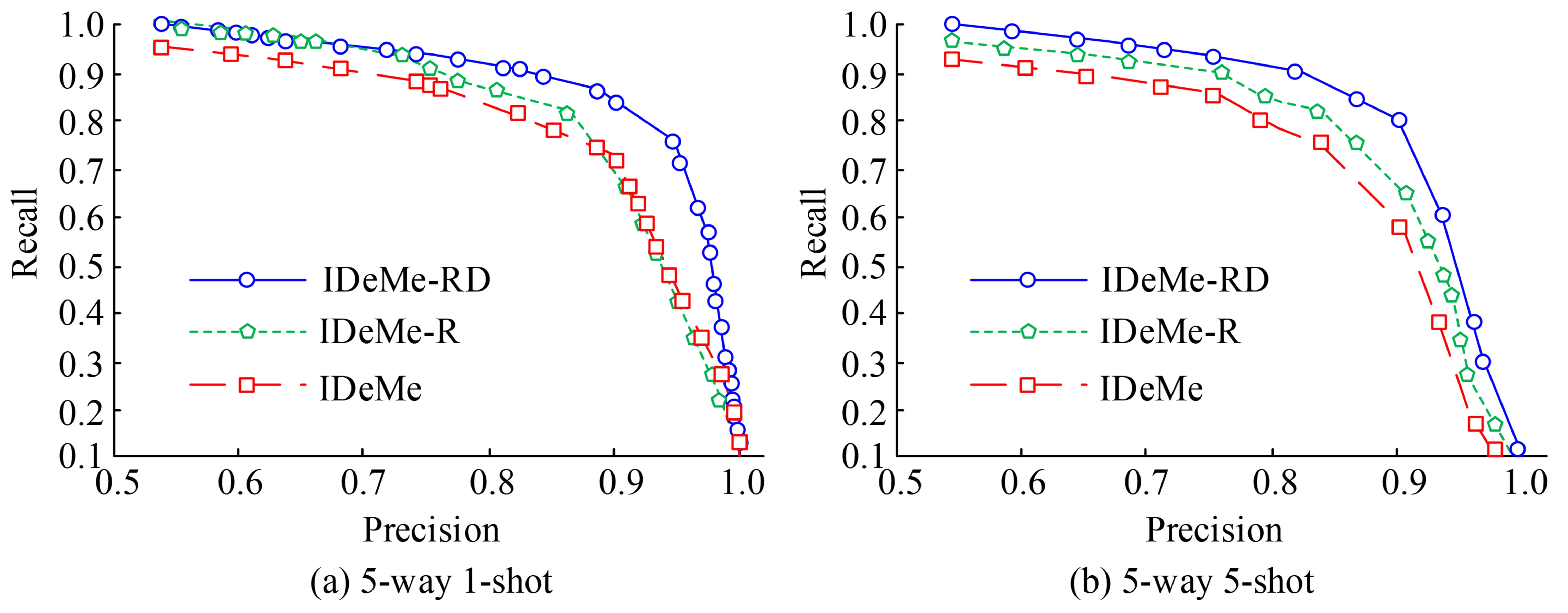 shot test results. The IDeMe-RD network has a larger area under the P-R curve and