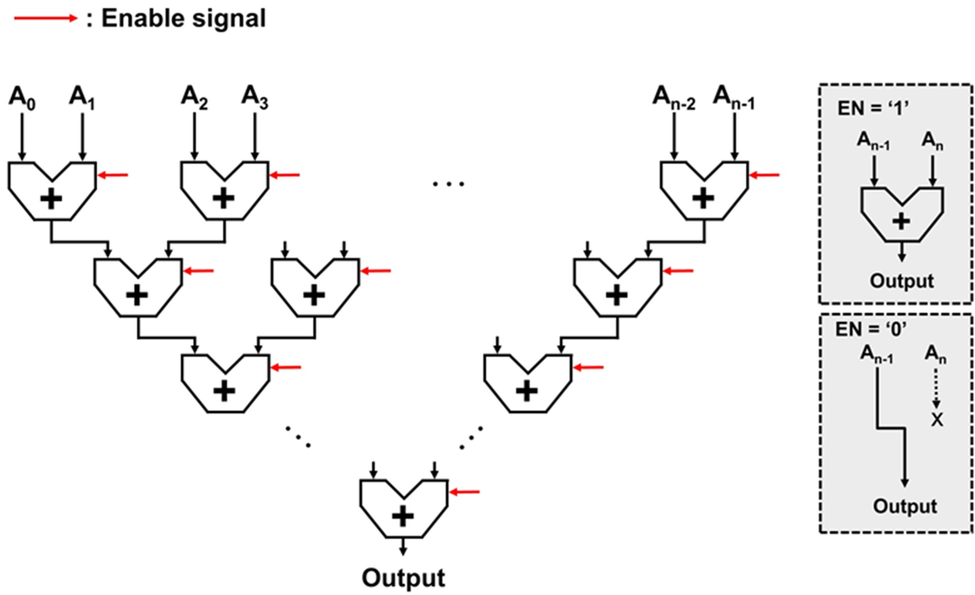 while adding an enable signal to each adder. If the enable signal is ‘1,’ the operation