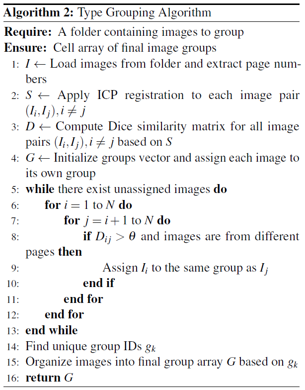 In conventional analysis [6], each character in the scanned images is extracted and grouped by visual similarity,