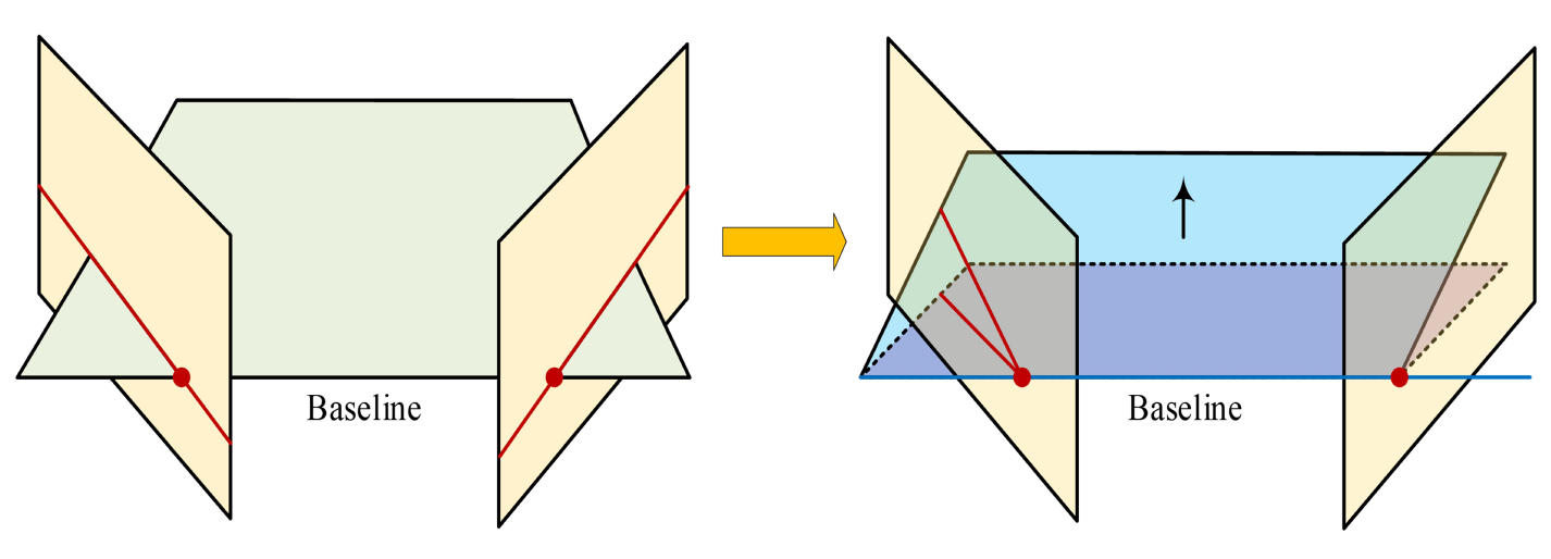 As shown in Fig. 2, the line connecting the two cameras (baseline) will intersect with the opposite