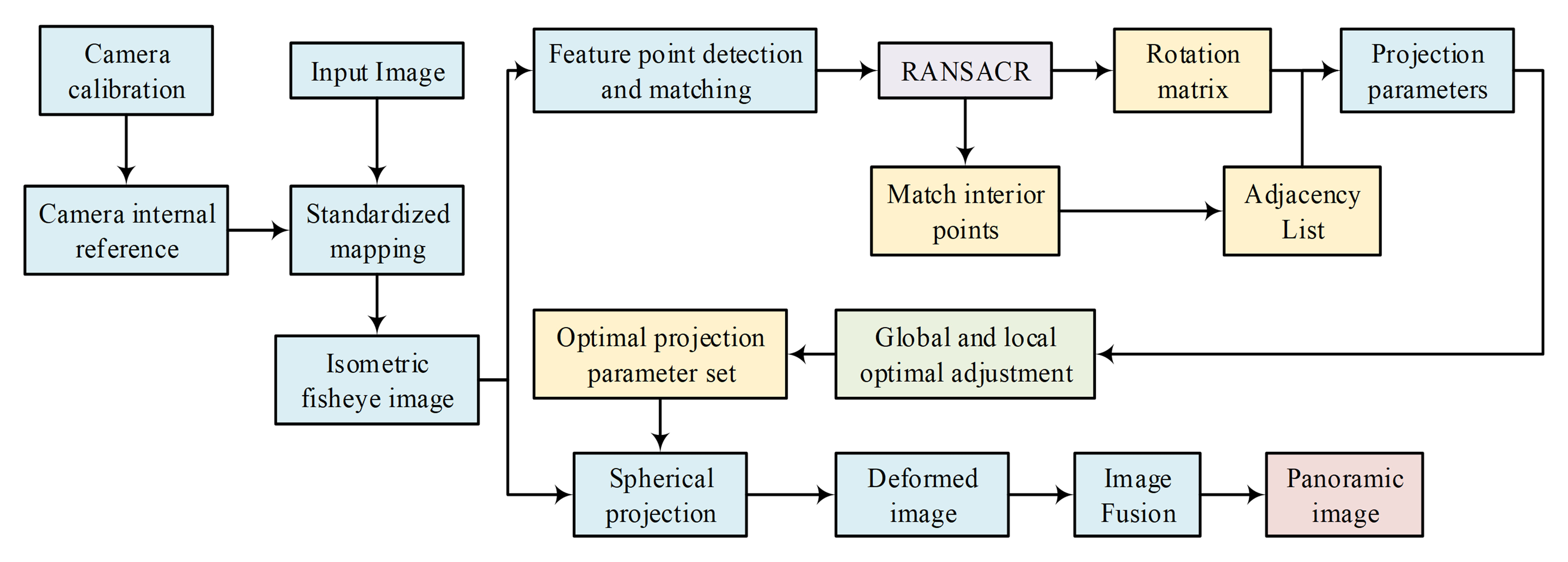 fisheye image stitching method is shown in Fig. 7.