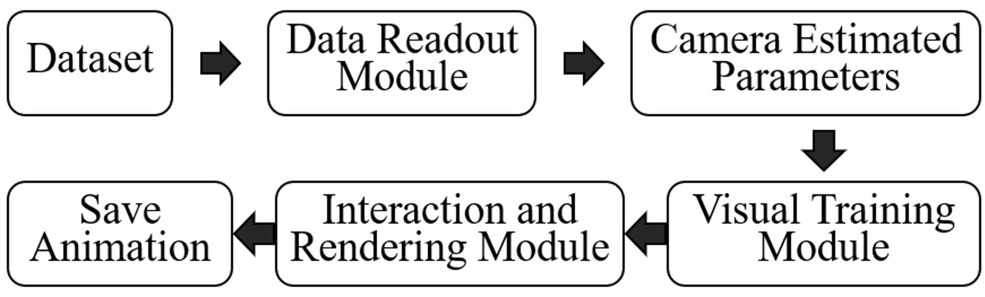 and a joint optimization and rendering module, and generates the 3D scene model and