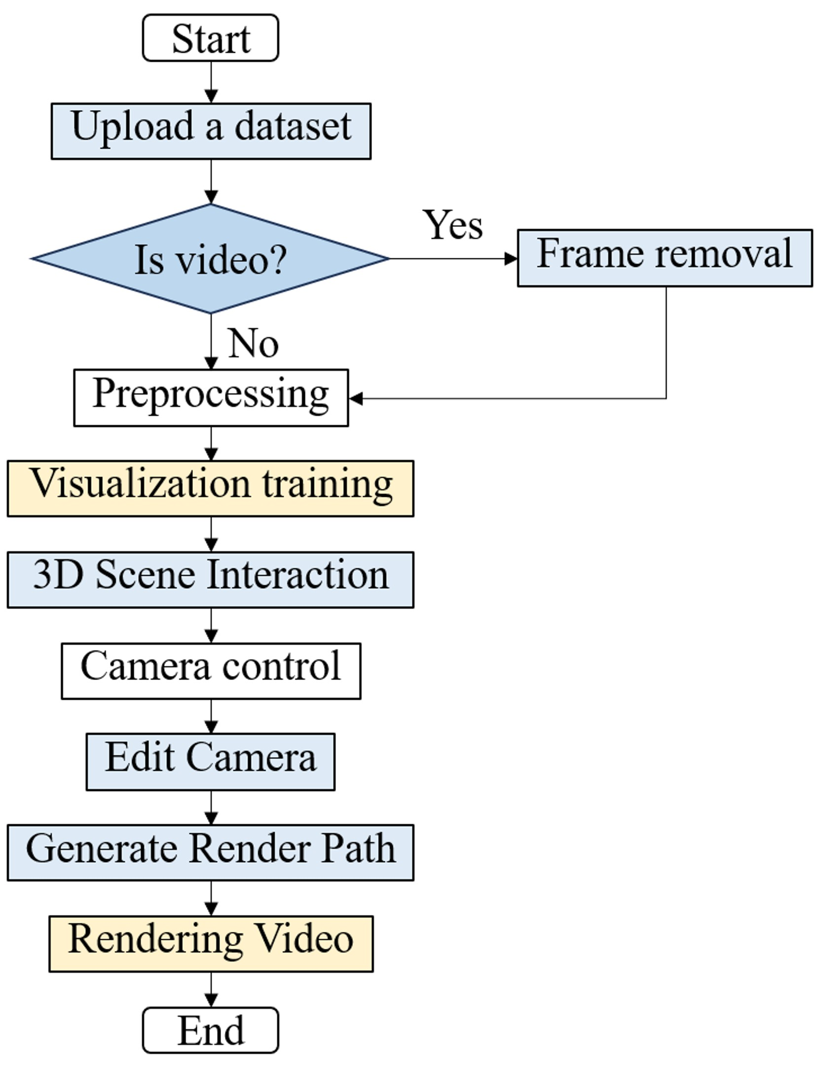 These inputs undergo preprocessing, including resizing and depth map prediction. Next,
