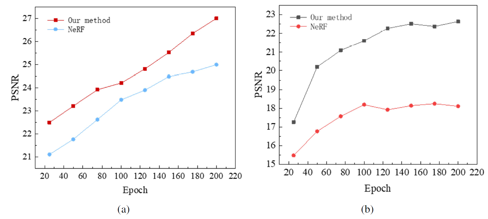 in comparison with the NeRF method. Taking PSNR, SSIM, and LPIPS as the quantitative