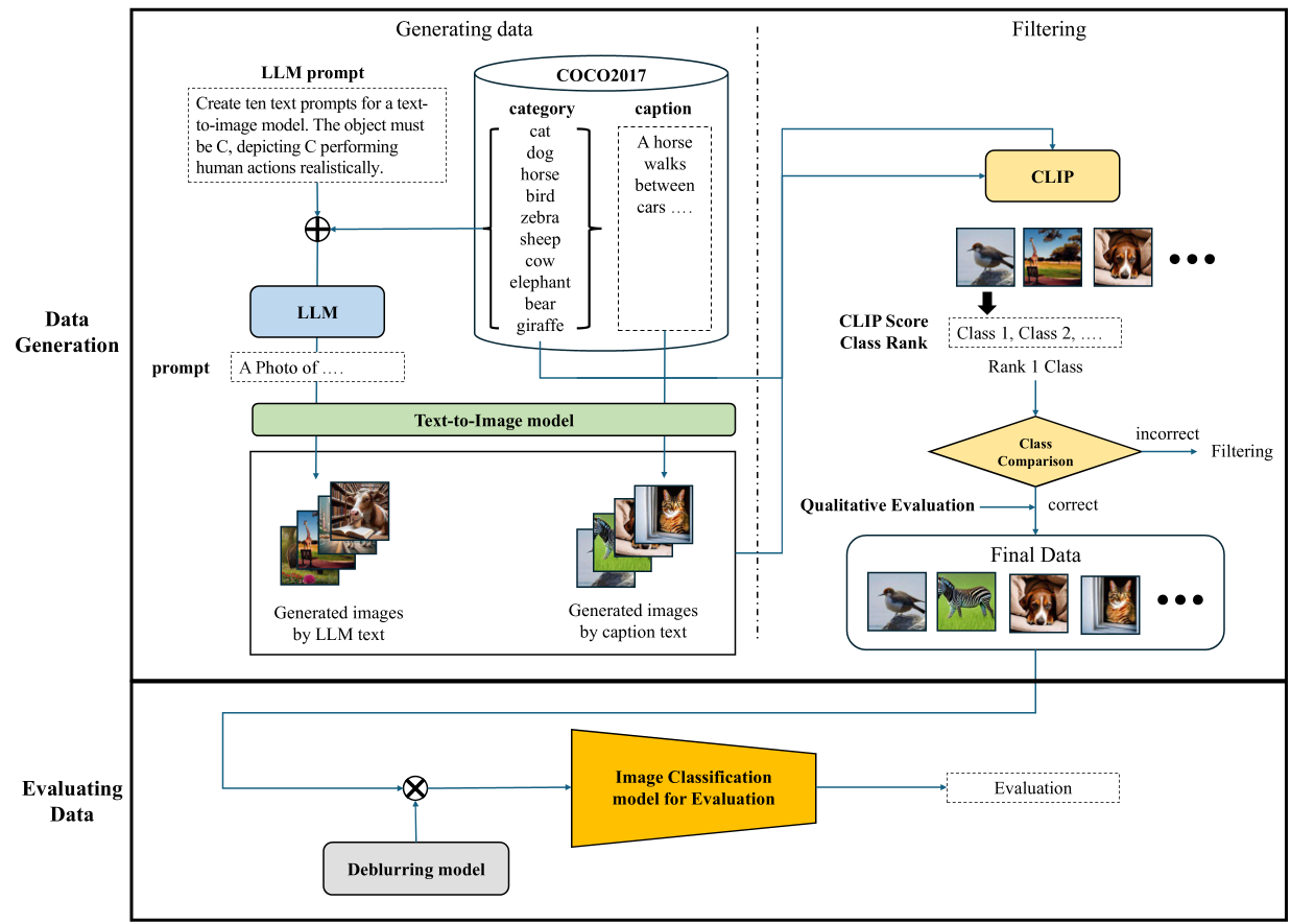 shown in Fig. 1: first, generating a dataset (Subsection 3.1), and then evaluating it (Subsection