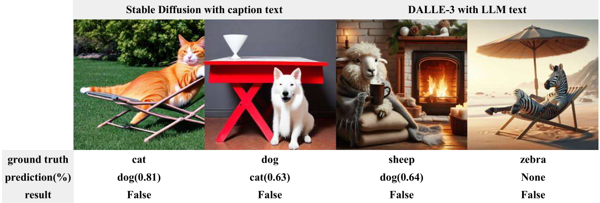 employed texts from Large Language Model (LLM) like ChatGPT4 [17] and COCO2017 [10] captions for constructing texts and utilized classification for evaluation, significantly