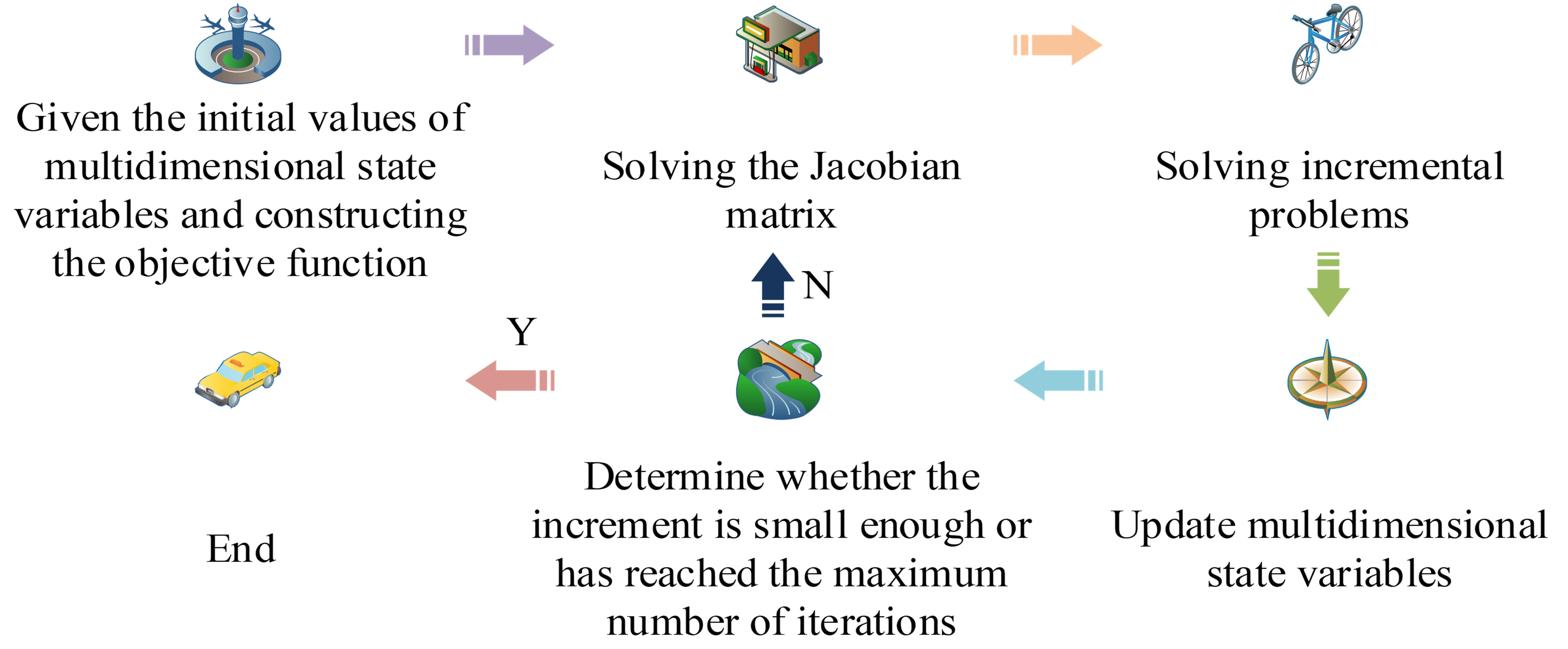 the Jacobian matrix and increment, and update the multidimensional state variables.