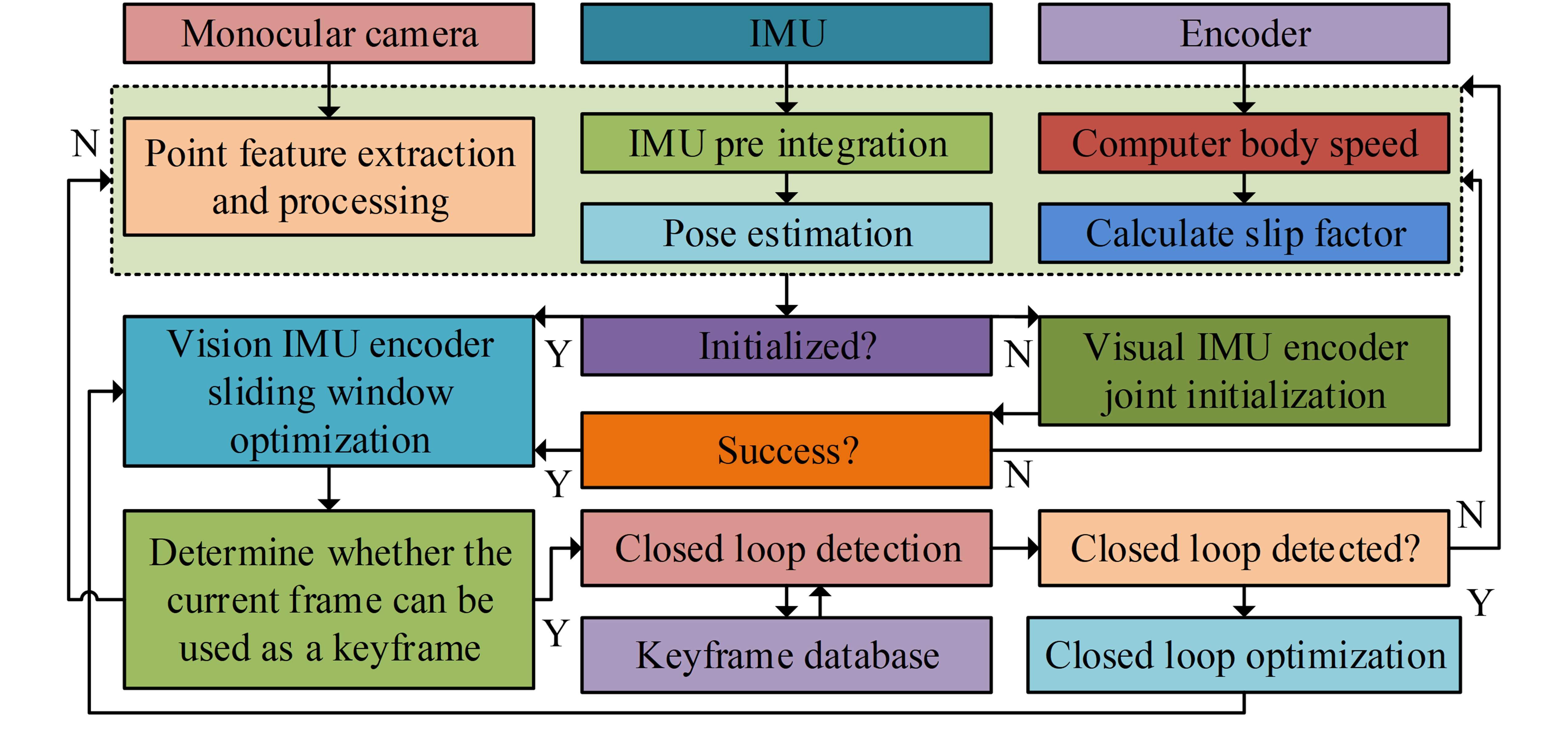 sliding window optimization, and vision-IMU-encoder closed-loop optimization. Among